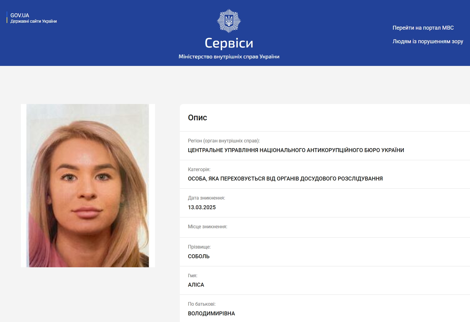 Национальное антикоррупционное бюро объявило в розыск помощницу бывшего депутата Киевского городского совета Дениса Комарницкого Алису Соболь, а также его менеджера Елену Богославскую.