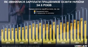Как менялась средняя зарплата педагогов за шесть летВ следующем году планируется существенное повышение зарплат учителей. Сейчас педагоги только получают доплаты к основной зарплате. На инфографике – как за последние шесть лет в Украине менялась средняя зарплата работников образования.