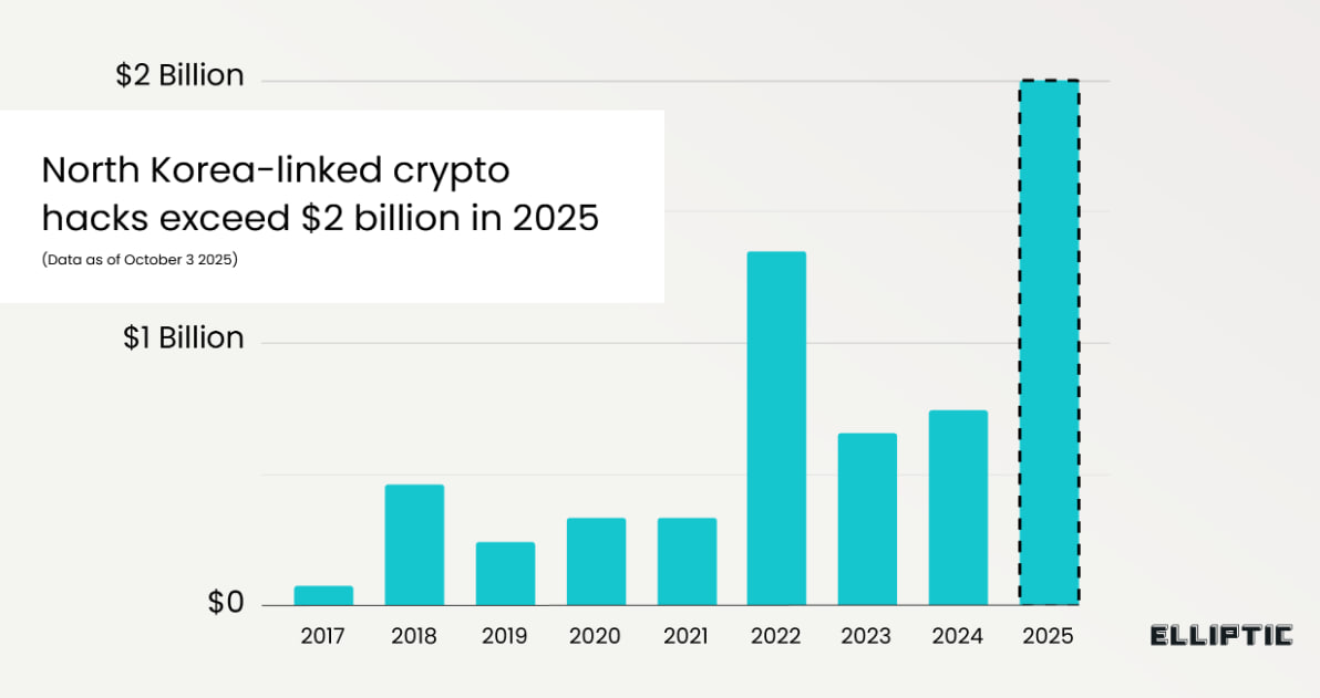С начала 2025 года хакеры, работающие на правительство Северной Кореи, совершили более 30 кибератак и украли криптовалюту на сумму более $2 миллиардов. Это самая большая годовая сумма за весь период.