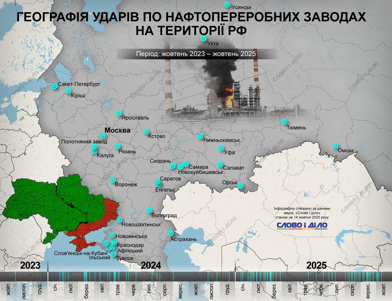 Украина в течение года усилила атаки на российские НПЗ. Точные удары дронов и ракет вглубь территории рф продолжают обострять топливный кризис в стране-агрессоре. По данным разведки, россия возобновила поставки бензина из Беларуси после почти годового перерыва, что связано с высоким спросом и внеплановыми остановками нефтеперерабатывающих заводов. Только в октябре дроны поразили не менее пяти российских НПЗ, один из которых остановил самую большую установку после удара. Всего с начала этого года Украина нанесла более полусотни ударов по НПЗ на территории россии, а с октября 2023-го и по сегодняшний день количество атак достигло более 100. География ударов – на карте «Слово и дело».