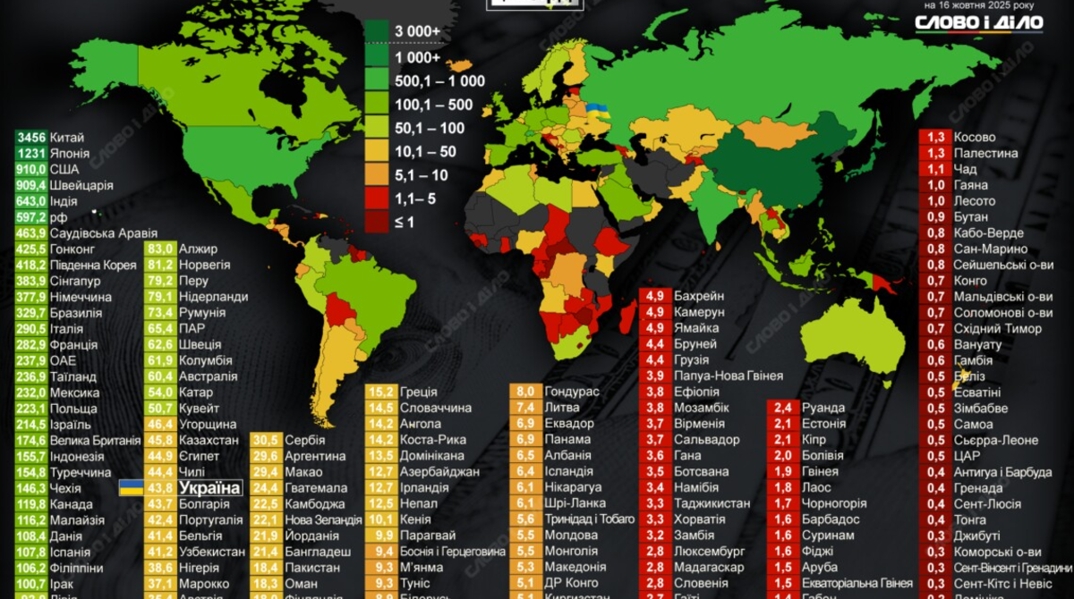 Цены на золото и серебро на днях обновили исторические рекорды мировых рынков. Одной из причин спроса на безопасные активы аналитики называли ужесточение торговых споров между США и Китаем. На сегодня Китай имеет самые большие резервы центрального банка, они составляют около 3,5 трлн долларов. За ним следует Япония, а также США и Швейцария. Значительными финансовыми активами также владеют Индия и рф. Резервы центрального банка Украины оценивали почти в 44 млрд долларов, однако их объем может меняться – в зависимости от поступлений от международных партнеров, продажи и покупки валюты НБУ. На инфографике «Слово и дело» – сравнение резервов центральных банков стран мира.