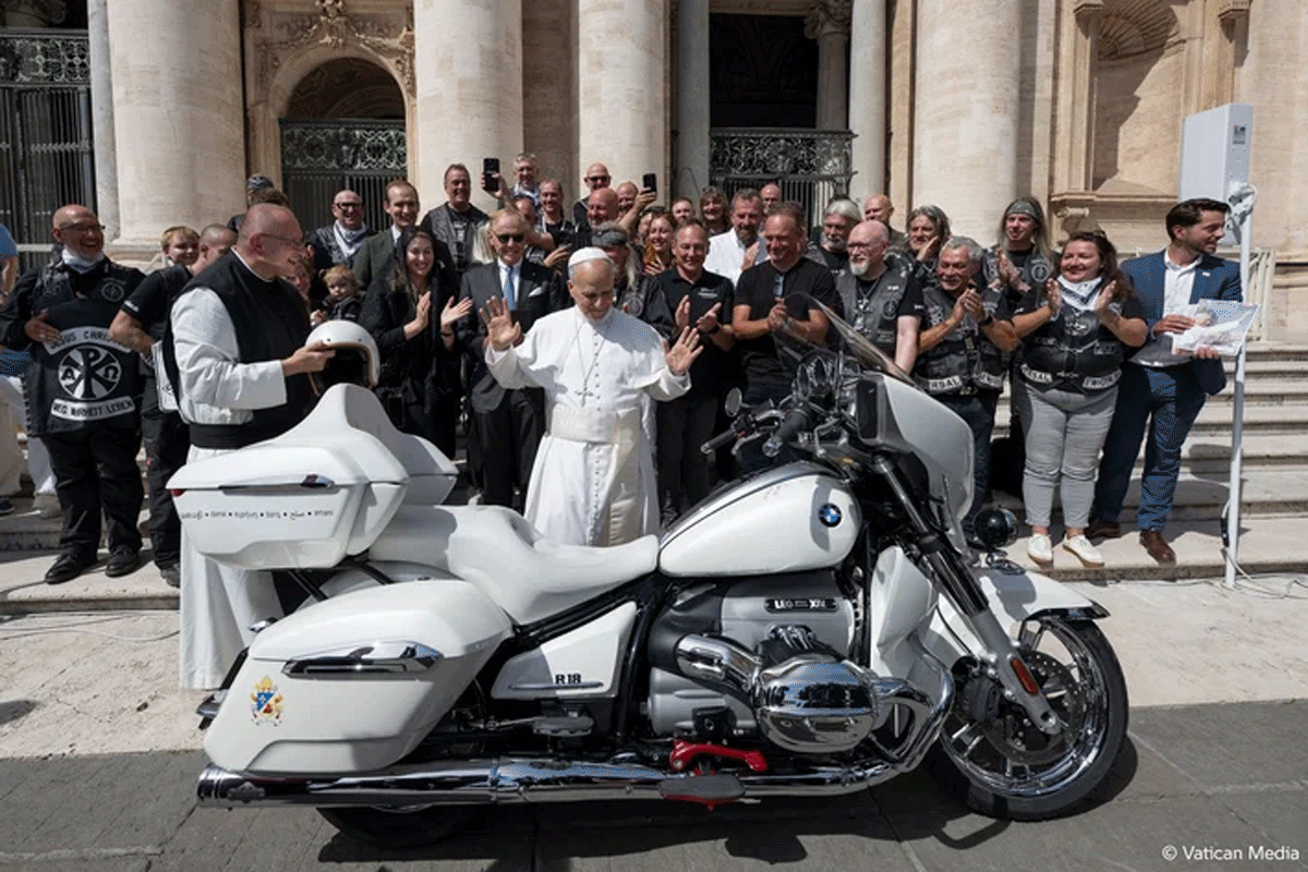 Байк принял участие в мотопробеге из Баварии в Рим и там его торжественно вручили понтифику. Мотоцикл доставила немецкая группа христианских мотоциклистов, называющих себя Jesus Bikers.