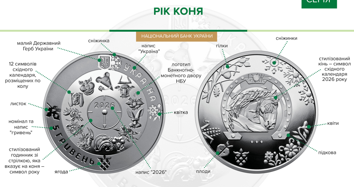 Национальный банк Украины ввел в обращение нейзильберовую памятную монету «Год Лошади», посвященную одному из двенадцати животных китайского зодиака.