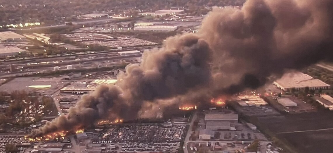 Огромный столб токсичного дыма заставил власти призвать жителей в радиусе нескольких миль проследовать к укрытиям.