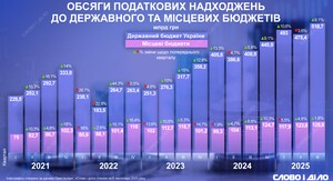 Как менялись налоговые поступления в госбюджет и местные бюджеты за пять летКакими были объемы налоговых поступлений в государственный и местные бюджеты до начала вторжения россии и как они изменились почти за четыре года большой войны – на инфографике Слово и дело.