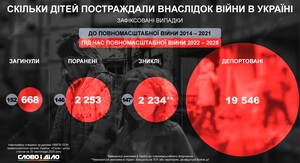 Погибшие, раненые, депортированные: оценка потерь среди детей из-за агрессии рфСколько украинских детей пострадали, погибли или были депортированы в рф за годы российской агрессии – на инфографике Слово и дело.
