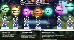 Зимние праздники украинцев: новые даты по новоюлианскому календарюДень Святого Николая, Рождество, Крещение и Сретение. Новые даты зимних праздников 2025-2026 после перехода ПЦУ на новоюлианский календарь – на инфографике Слово и дело.