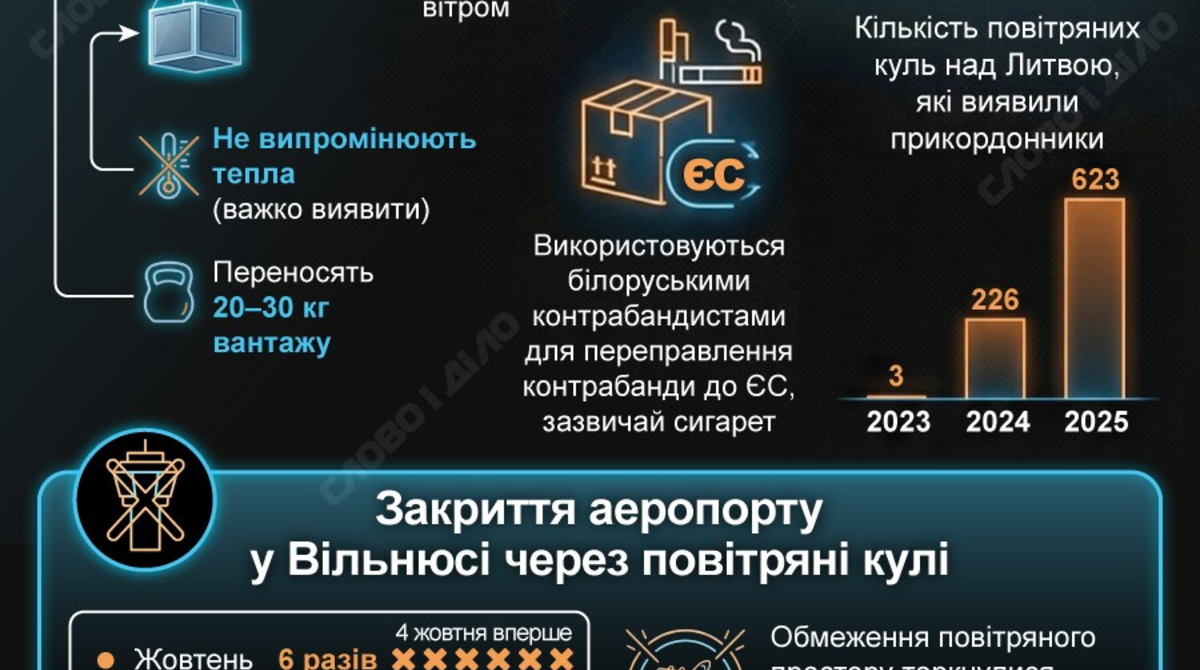 Литва продолжает страдать от воздушных шаров из Беларуси, с начала года их зафиксировали уже более 600. Власти Литвы в декабре ввели чрезвычайное положение, поскольку периодическое наличие не разрешенных предметов в небе представляет потенциальную опасность для воздушного транспорта. За последние два месяца уже 15 раз останавливал работу аэропорт в Вильнюсе, в целом ограничения воздушного пространства затронули более 350 авиарейсов, а ущерб оценивается в сотни тысяч евро. Что известно о белорусских воздушных шарах в Литве, которые запускают контрабандисты – на инфографике.