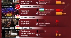 Самые громкие теракты в мире в период празднований Рождества и Нового годаНовогодне-рождественский период не только в Европе, но и во всем мире остается достаточно опасным с точки зрения террористической угрозы. Подробнее о случаях терактов в декабре-январе в разных странах мира – на инфографике.