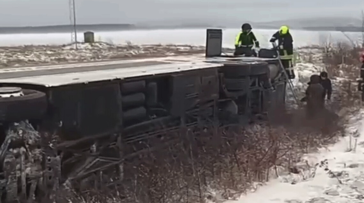 В Калушском районе Ивано-Франковской области рейсовый автобус съехал с заснеженной трассы в кювет и перевернулся на бок. В салоне находились 30 пассажиров и два водителя.