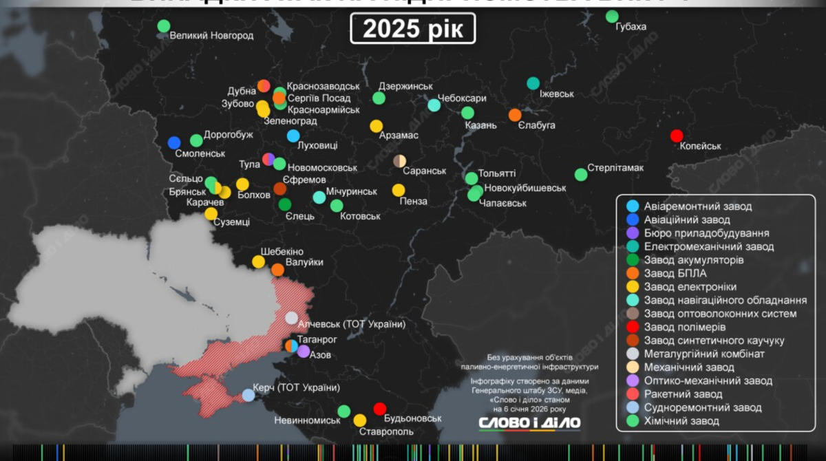 В январе прошлого года беспилотники атаковали три оборонных завода в рф: химический (Сельцо, Брянская область), авиационный (Смоленск) и завод электроники в Брянске.