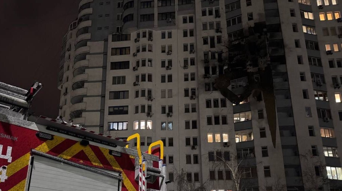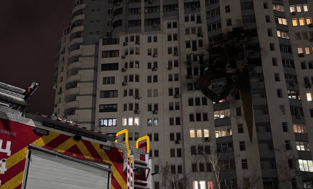 В Печерском районе обломки БпЛА повредили фасад девятиэтажного жилого дома и нежилое многоэтажное здание.