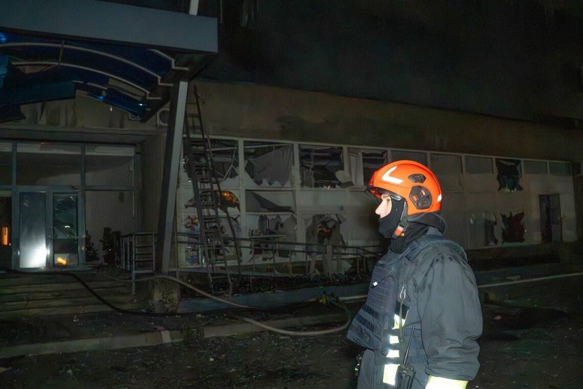 Спасатели отметили, что в результате попаданий возникли пожары в неэксплуатированной новостройке, помещении фитнес-центра, здании профессионального лицея, а также в расположенном рядом гараже с легковым автомобилем. Как отмечается, все возгорания оперативно ликвидировали.