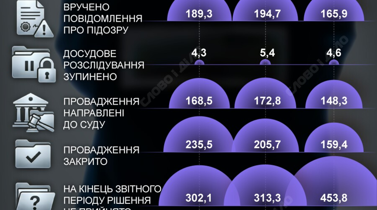 В 2024 году количество зарегистрированных дел возросло до 492,5 тысячи. По 194,7 тысячи объявили подозрения, в суд дошли 172,8 тыс. дел. При этом закрыли 205,7 тыс. производств. На третий год войны в Украине под стражей оказались 8,3 тыс. преступников.