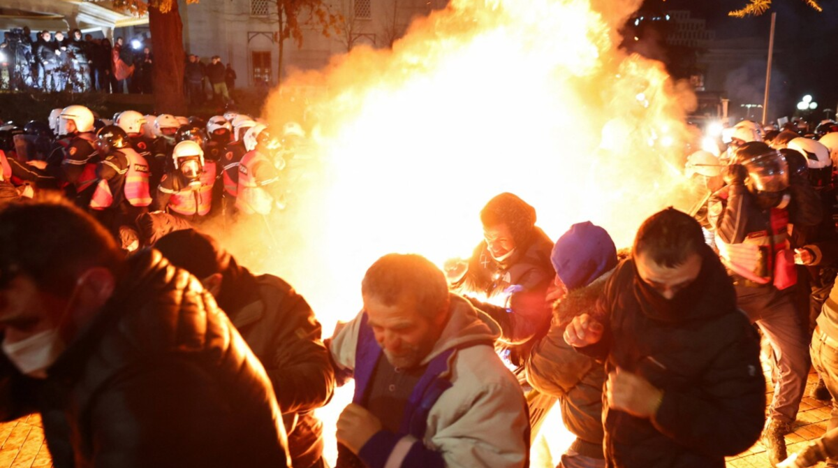 В столице Албании произошли масштабные столкновения между полицией и протестующими, которые требовали отставки правительства на фоне коррупционного скандала.