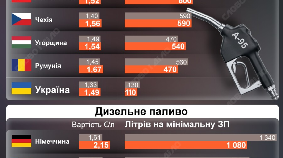 Сколько дизеля можно купить в Украине и ЕС за минимальную зарплату