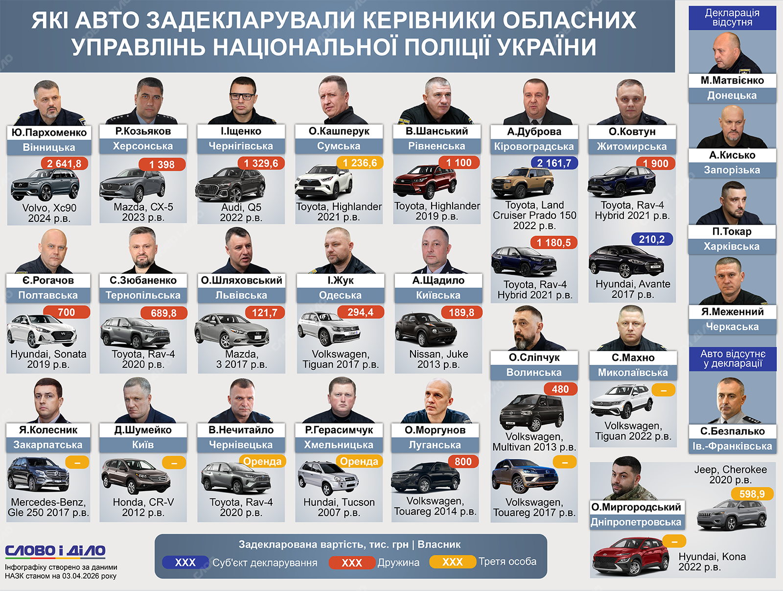 - Сергей Махно, полиция Николаевской области (Volkswagen Tiguan 2022 года, стоимость не указана);