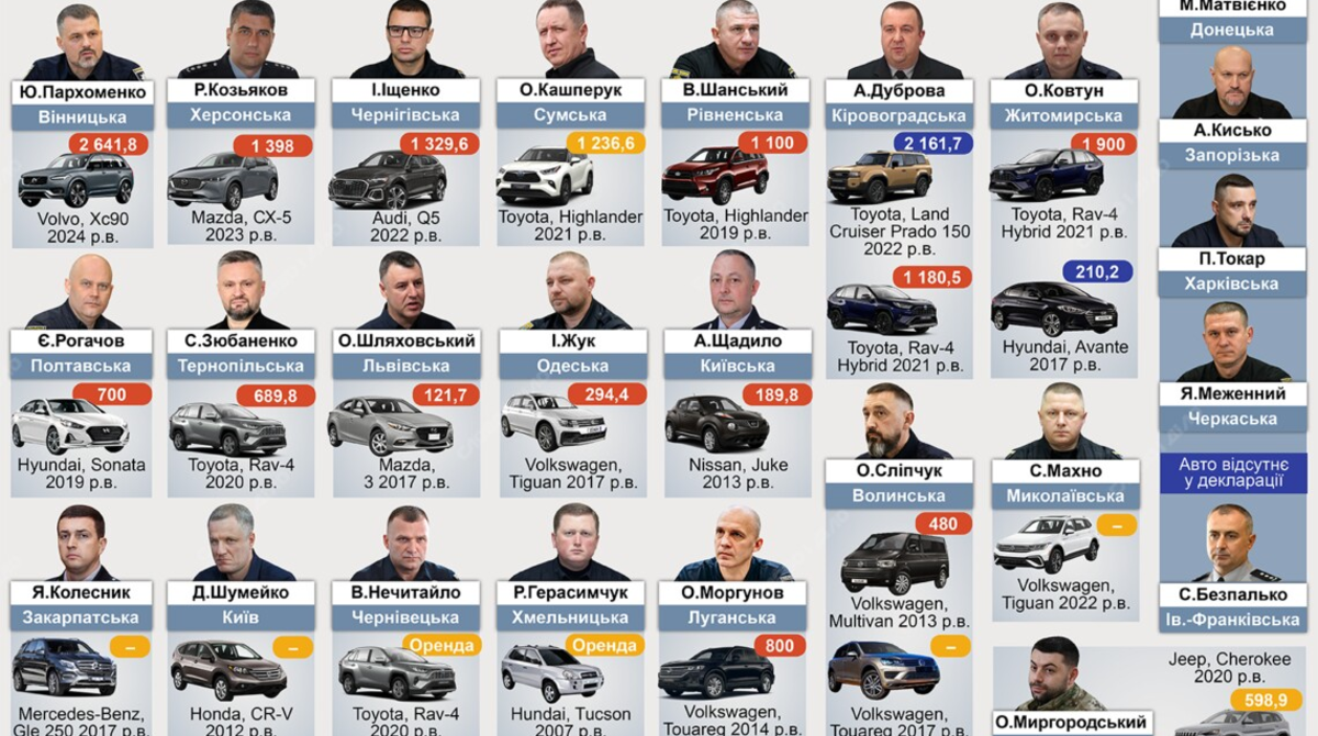 - начальник ГУНП Ровенской области Виктор Шанский (Toyota Highlander 2019 года, 1 миллион 100 тысяч грн);