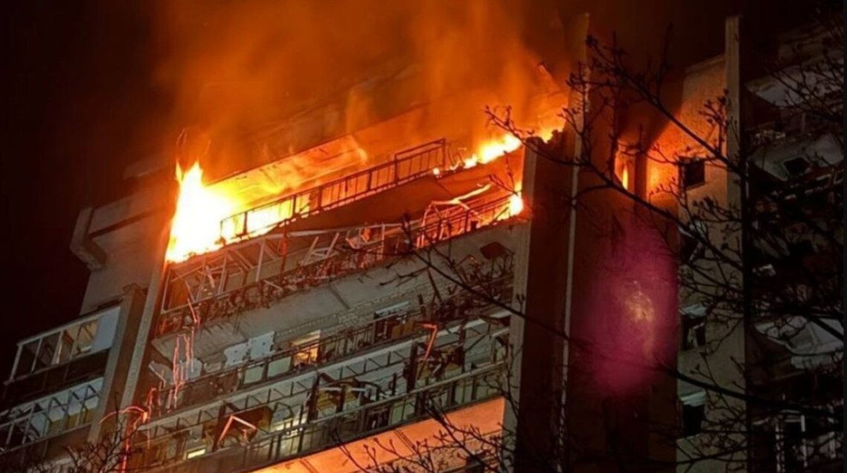 В ночь на 4 апреля российские войска нанесли удар по Сумам ударными беспилотниками. Один из дронов попал в многоэтажный жилой дом в центре города, вызвав масштабный пожар на верхних этажах.