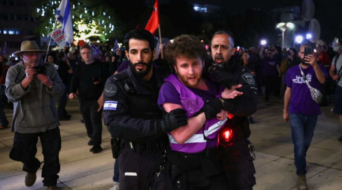 В израильском Тель-Авиве произошли жесткие столкновения между полицией и участниками антивоенной акции на главной площади города. Правоохранители применили силу, несмотря на временное решение Высшего суда справедливости, которое запрещало разгонять протест, если на нем присутствуют менее 600 человек.