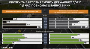 Ремонт дорог в условиях большой войны: что сделали и сколько средств потратилиВ Украине с марта возобновили текущий ремонт дорог общего пользования, не включая капитальный. На инфографике – объемы и стоимость ремонта и строительства дорог с 2022 по 2025 год.