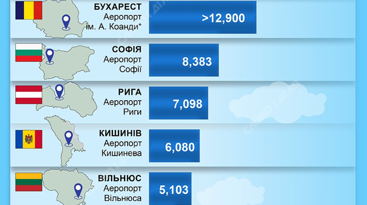 Пассажирооборот аэропорта Кишинёва оказался немного меньше, чем Рижского: 6 миллионов 80 тысяч человек. В частности, именно в столице Молдовы возобновила в 2024 году свои полёты украинская авиакомпания SkyUp.