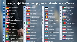 Чаще всего за годы каденции Зеленский ездил с официальными визитами в Германию и ФранциюОфициальные зарубежные визиты Зеленского. В какие страны президент ездил чаще всего за семь лет – на инфографике.