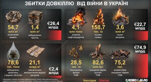 Экологический ущерб от большой войны в Украине превысил 126 миллиардов евроУничтоженные животные, деревья и тонны загрязнений в почве и водоемах. Какой ущерб окружающей среде нанесла полномасштабная война – на инфографике «Слово и дело».