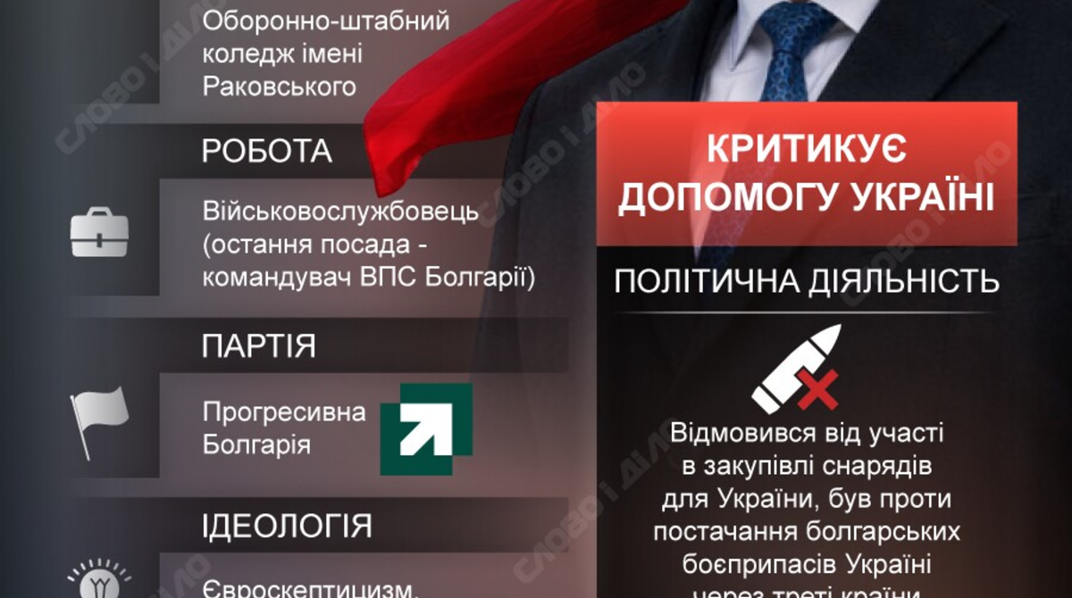 Однако, в отличие от чешского президента Петра Павела, который тоже пришёл в политику из армии и был «натовским генералом», Радев не имеет проукраинских симпатий.