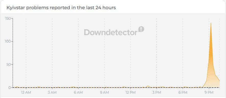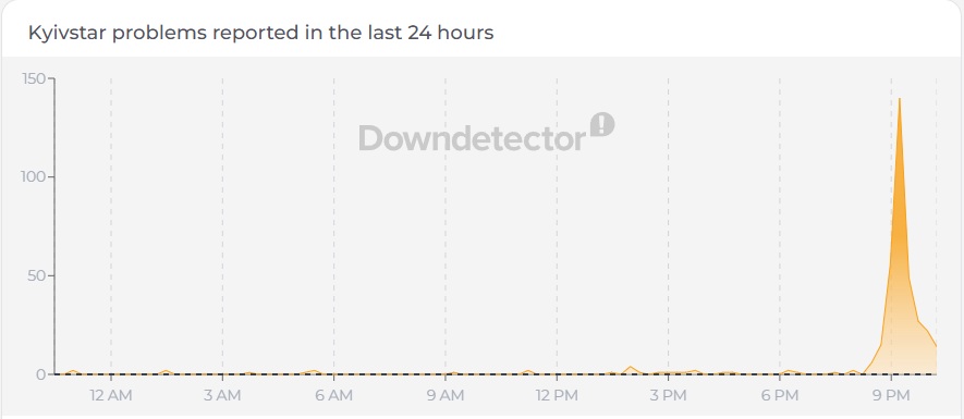 Сообщается, что возникают трудности со звонками и доступом к интернету. При этом крупнейший мобильный оператор Украины ситуацию пока что не комментировал. Больше всего жалоб было зафиксировано в период с 20:13 по 21:13.