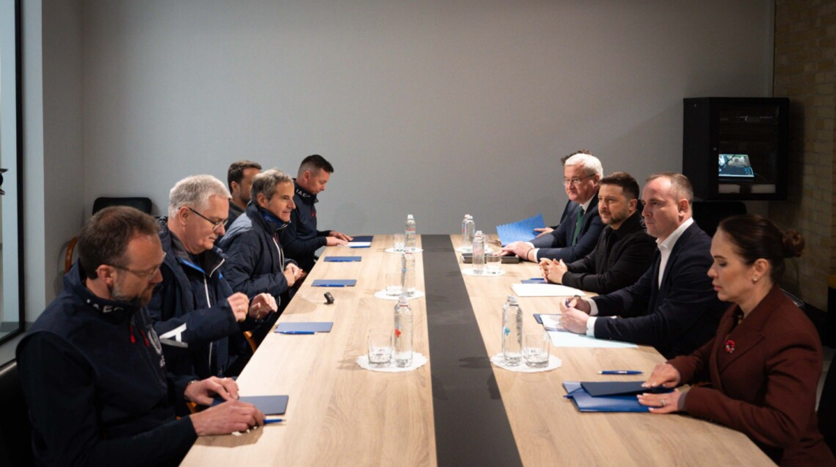 Президент Владимир Зеленский и генеральный директор МАГАТЭ Рафаэль Гросси во время встречи договорились продолжать миссии по постоянному мониторингу состояния оккупированной ЗАЭС. Также они приняли участие в открытии новой постоянной экспозиции Национального музея «Чернобыль».